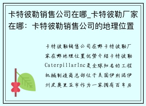 卡特彼勒销售公司在哪_卡特彼勒厂家在哪:卡特彼勒销售公司的地理位置优势