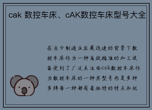 在当今制造业发展迅速的背景下,数控车床作为一种高效、精准的加工设备,受到了广泛关注。而cak数控车床作为数控车床的一种,其型号也是多种多样,每一种都有着独特的特点和优势。